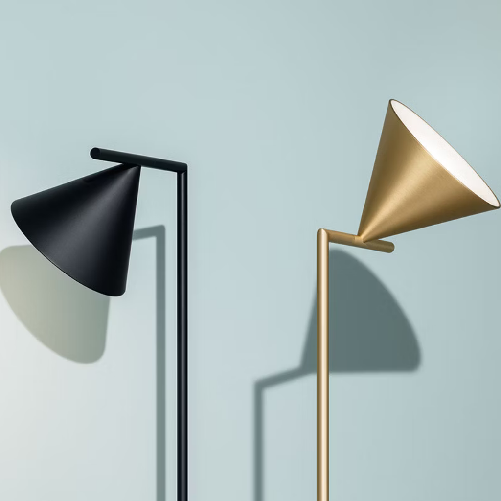 スリムなスチールポールに、シャープな円錐形のシェード、そして上質な大理石を使用したベース。イタリアの照明ブランドらしい組み合わせが魅力です。