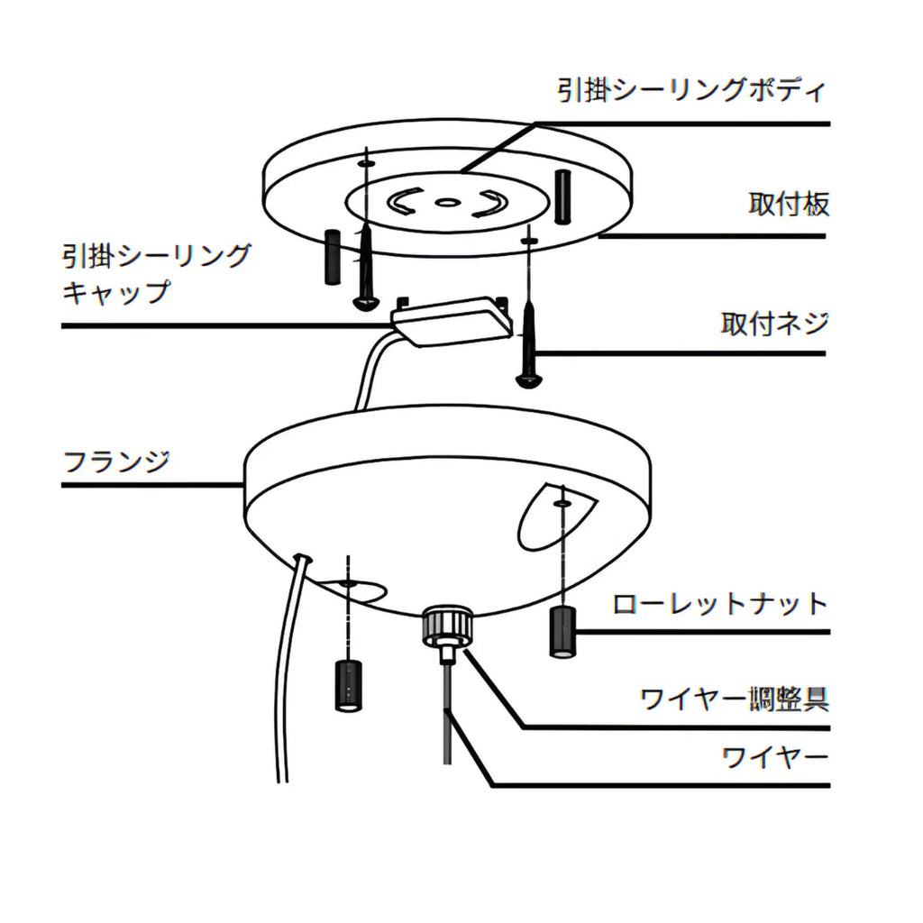 天井に埋込引掛ローゼットか引っ掛けシーリングがついている場合の、ドライバーひとつで器具本体の取り付けをする仕様です。(電気工事不要)