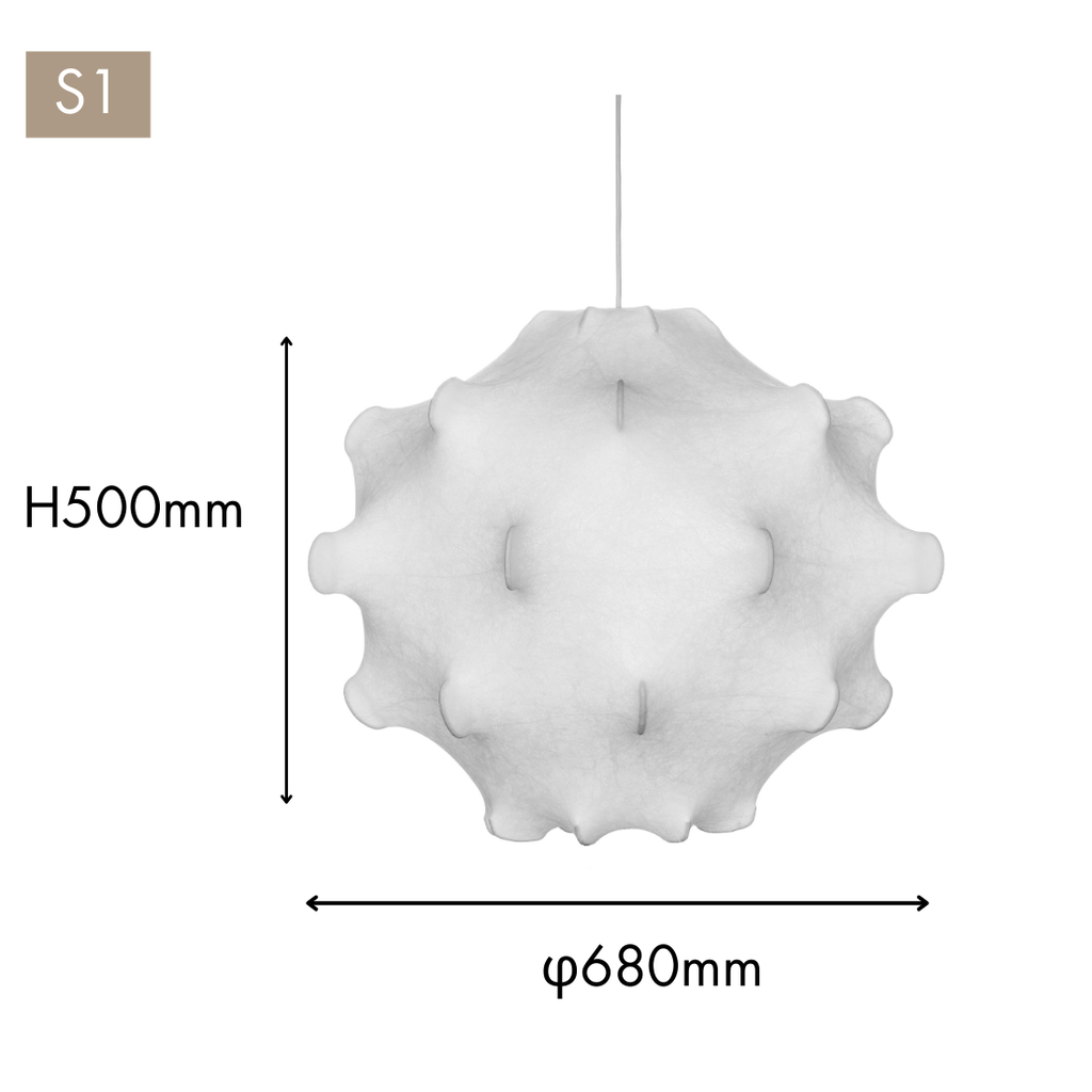 S1は直径約68cmの、空間に取り入れやすいバランスのよいサイズ。ダイニングやリビングに程よい存在感を与えながら、やわらかな光で空間を整えます。
