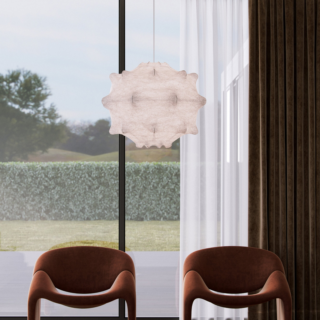 TARAXACUM(タラクサカム)は、1960年にアキッレ・カスティリオーニとピエル・ジャコモ・カスティリオーニによってデザインされたCOCOONシリーズを代表する名作照明です。 タラクサカムは、ラテン語でタンポポを意味し、やわらかなフォルムは、風に舞う綿毛を思わせます。