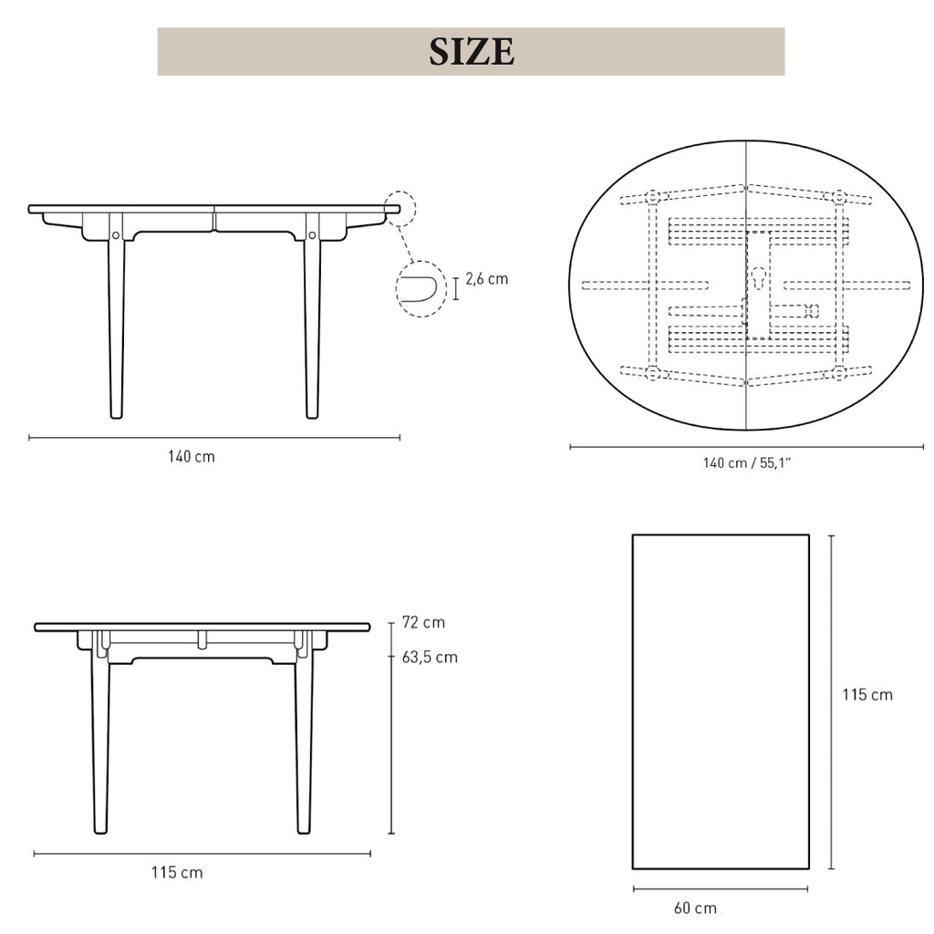 テーブルを特徴づけるのは、幾何学的な直線とオーガニックな曲線の美しいバランス。楕円形の天板と下方に向かい細くなるテーパー加工が施された丸脚。そして、ディテールへのこだわりが、このテーブルをより完成されたものにしています。
