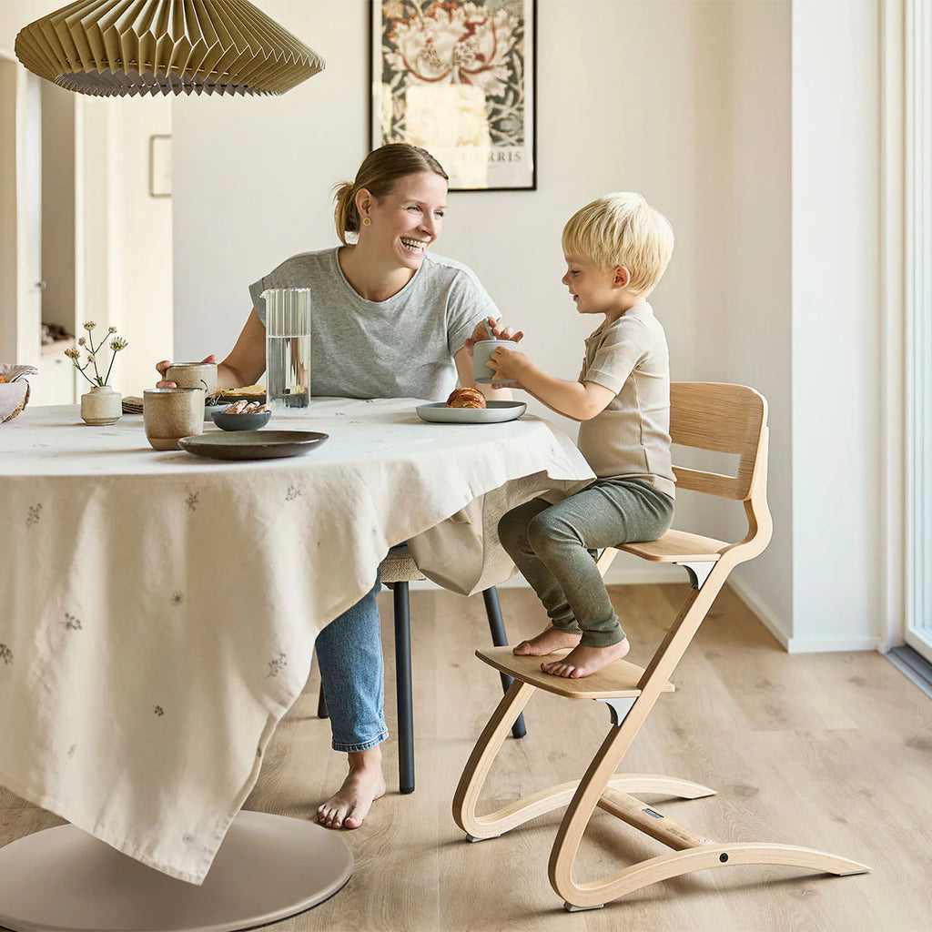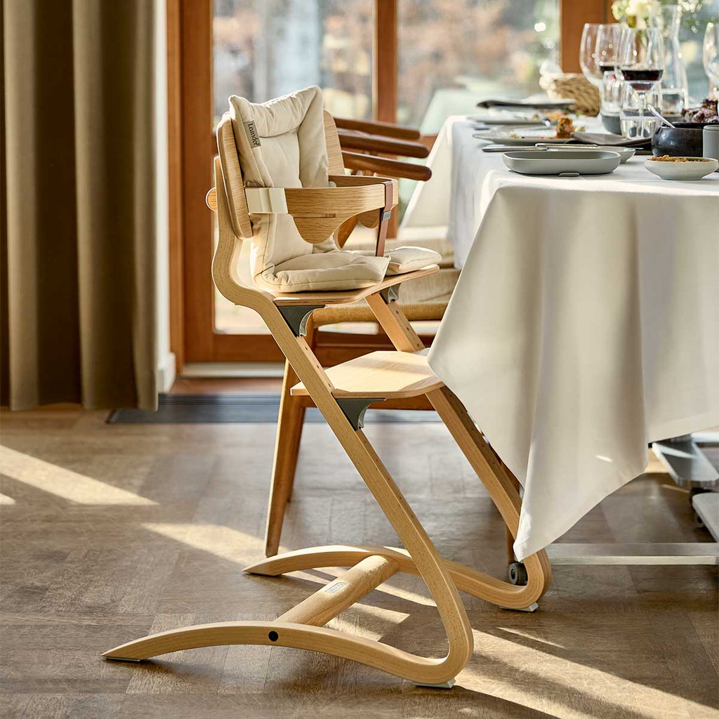 Leanderハイチェアは、木のぬくもりを感じられる2つのカラーからお選びいただけます。