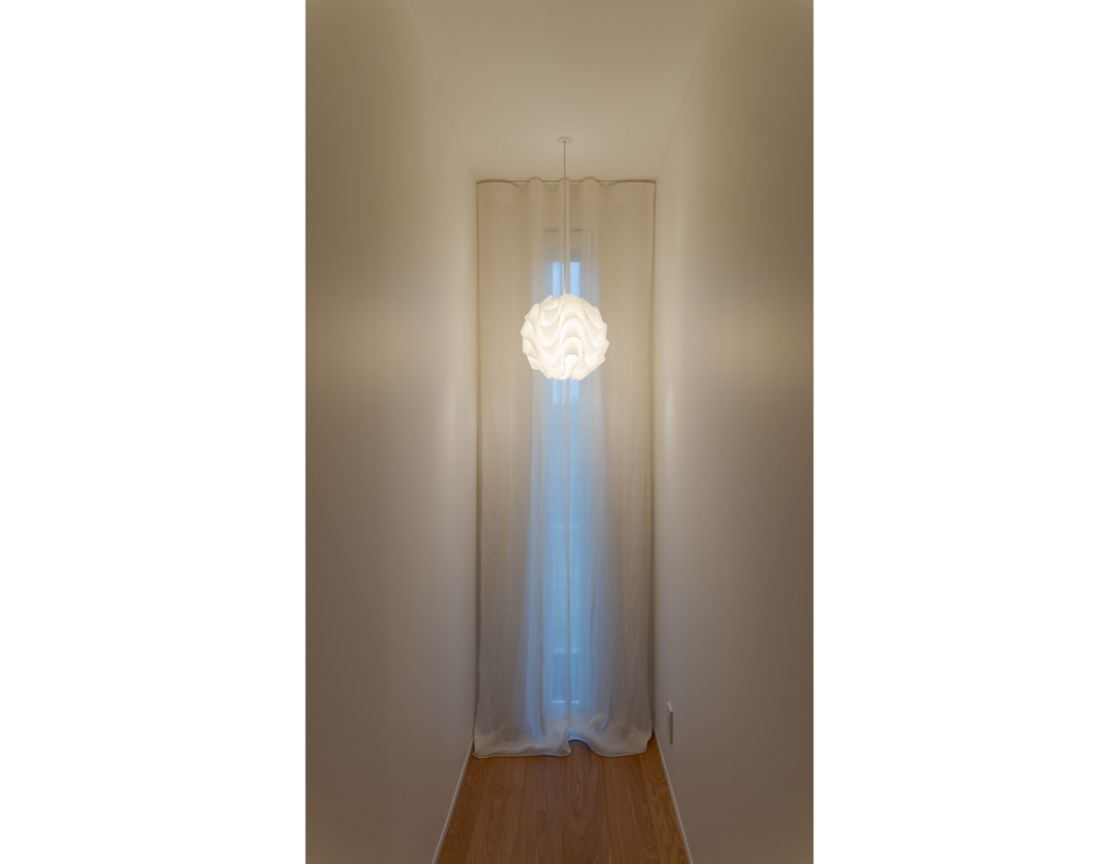 こちらは廊下の1角に吊るしたサイナスラインM。廊下や玄関先など限られたスペースにも、さりげなく“品”を添えてくれます。