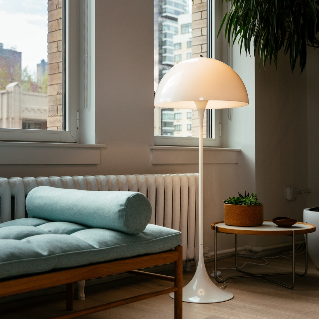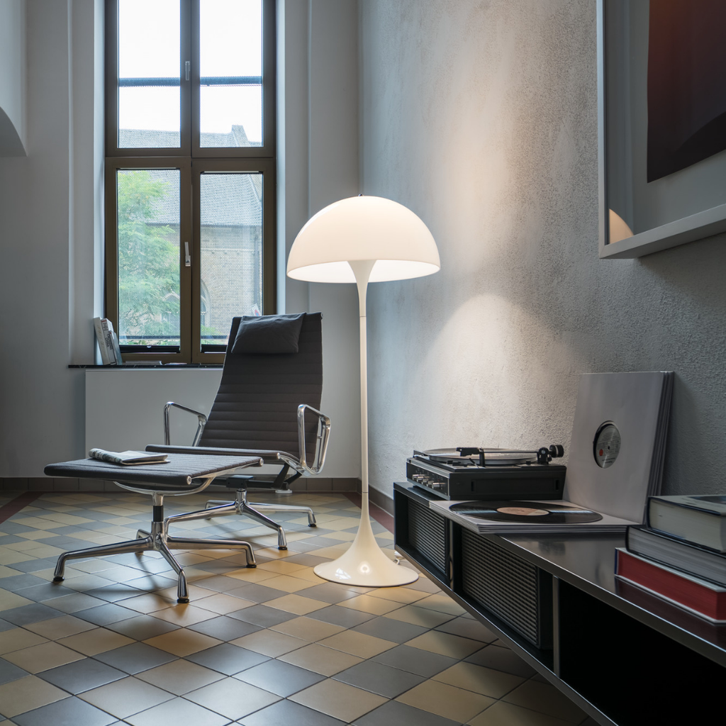 パンテラ フロアは、パンテラシリーズの中でも存在感と実用性を兼ね備えたフロアランプ。空間に高さと奥行きを与え、視線の流れを美しく整えると同時に、お部屋の印象を引き締めるアクセントとしても機能します。