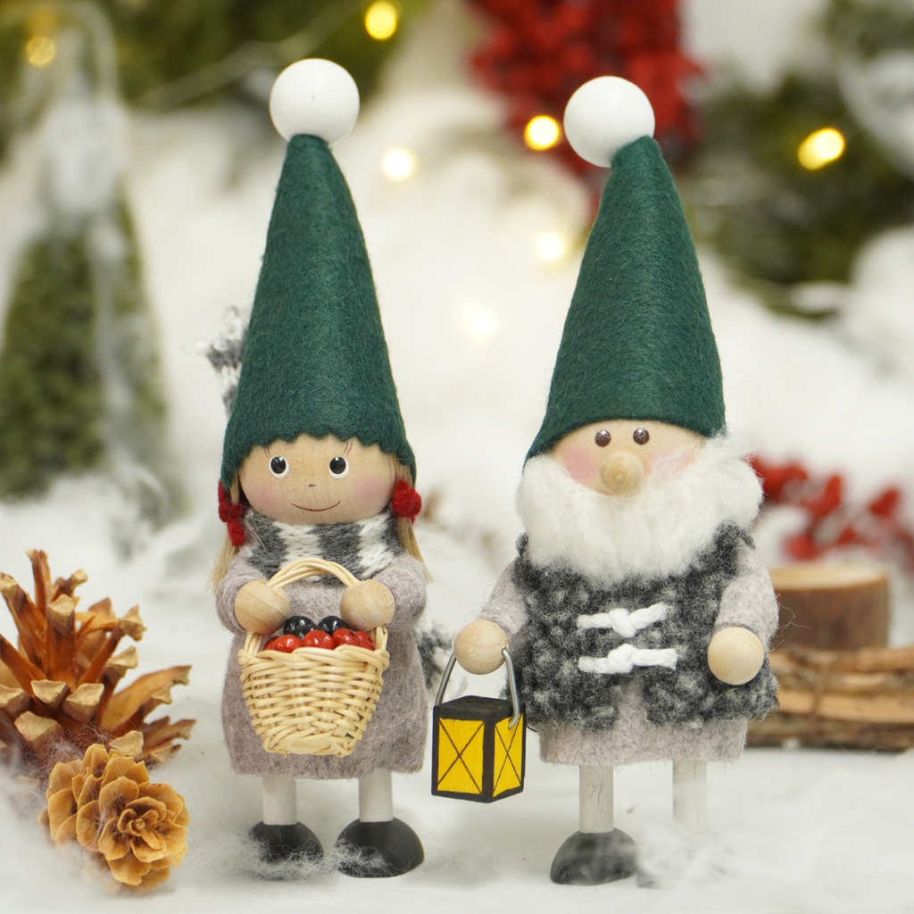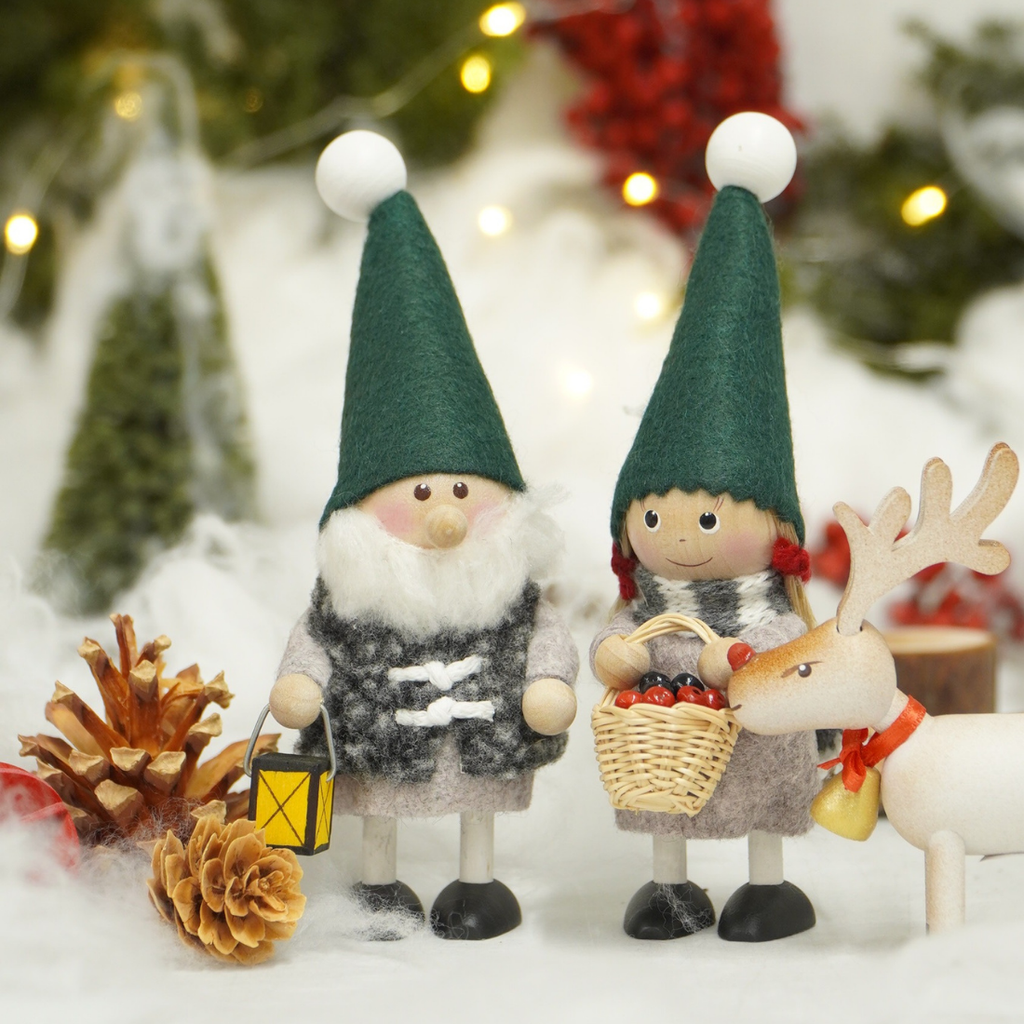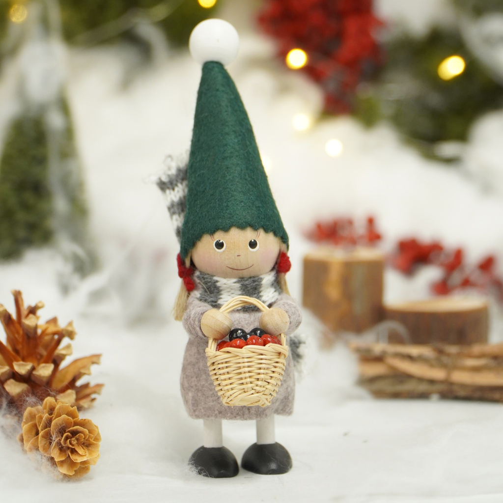 棚やテーブルに飾れば、まるで北欧の森からやってきた少女が、あなたのお部屋にも自然の恵みを届けてくれるよう。ランタンを持ったサンタと並べても、物語が広がりクリスマス気分をより楽しめます。